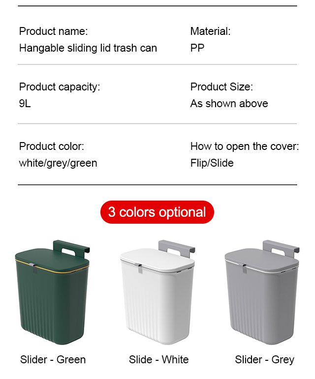 Hangable sliding lid trash can